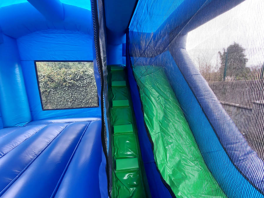 It has a very compact but large bounce area with a climb up ladder on the inside with safety netting to prevent any falls into the bounce area so safety is a major feature with this castle.
