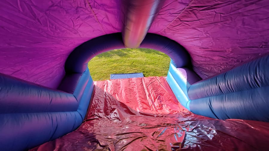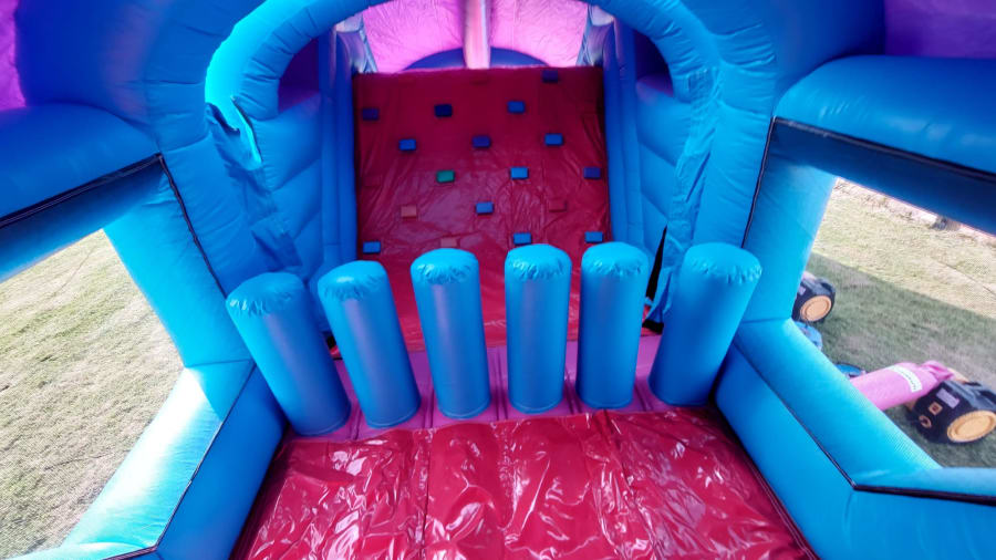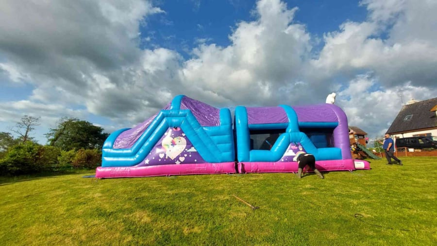 This Unicorn Obstacle course is a brand new fully enclosed obstacle course with lots of different obstacle and bish bashes a climbing wall and a big slide