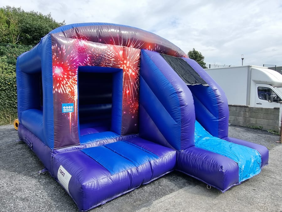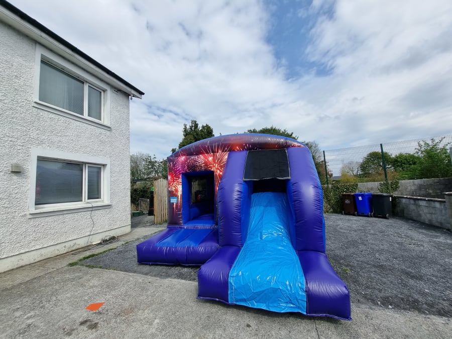 This castle is a big hit with those who have limited space in their gardens or yard and this unit also has a 6ft long slide out the side of it , great for young ones starting off and also for those older ones who want the party atmosphere .