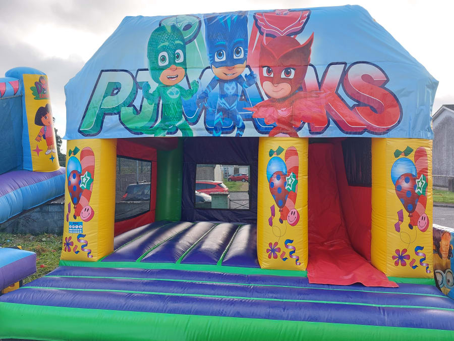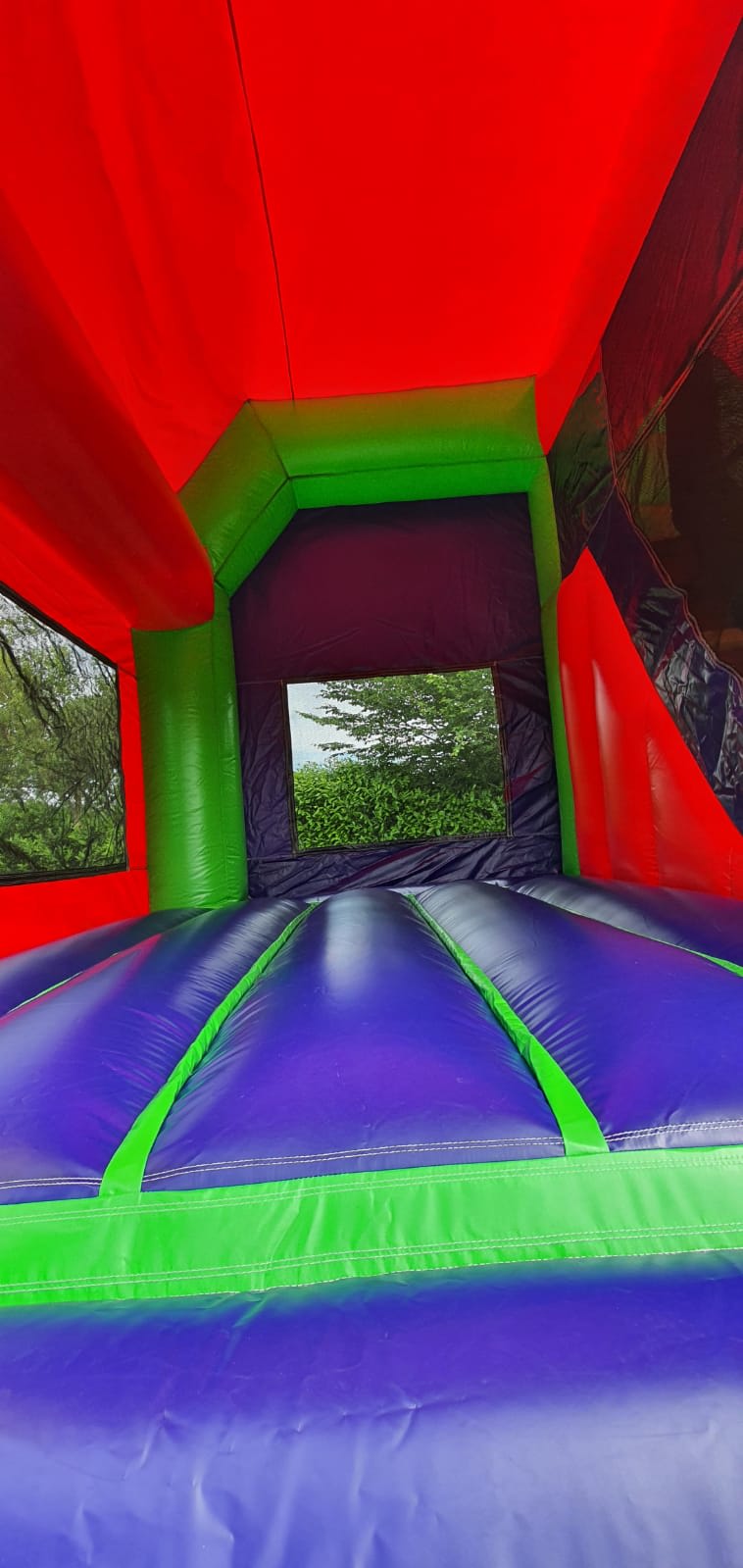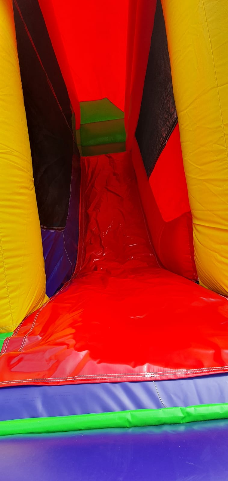 A brilliant combi with a large bonncy area and a 8 foot slide fully coverd and rain prove suitable for all weather and events.